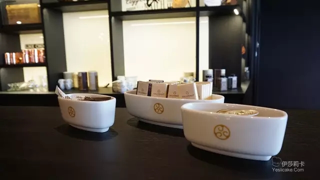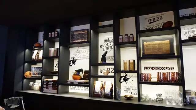 吧台内部陈列着的巧克力产品